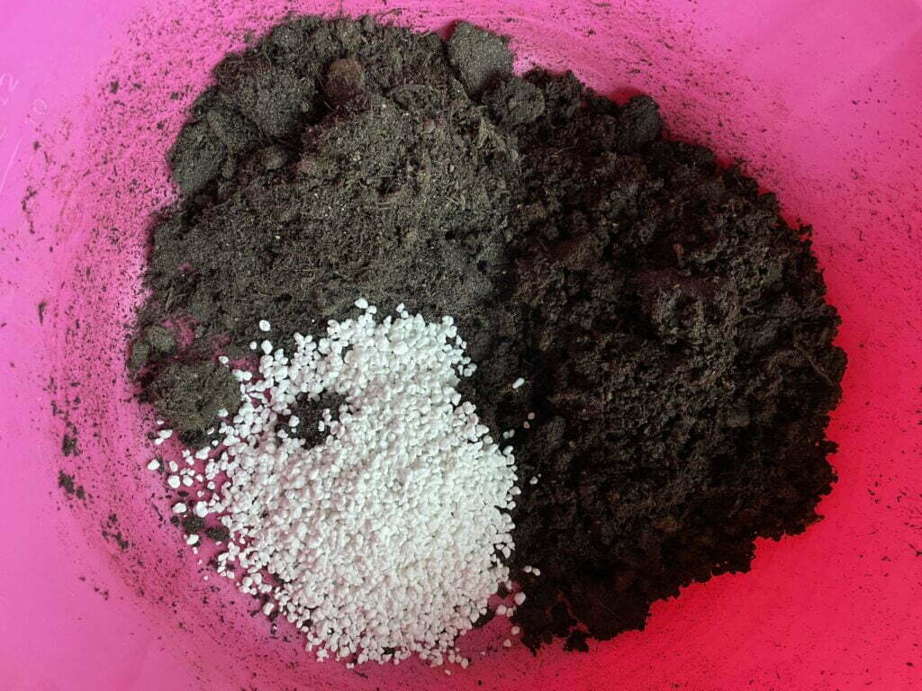 Bitte gut durchmischen und mit den Fingern zerkleinern. Sie werden selbst spüren, dass die Erde viel leichter und luftiger ist. Diese Erde nimmt auch sehr gut von unten Wasser auf. Oder ich spritze die Oberfläche mit einer Spritzflasche, wenn die Samen darauf liegen.