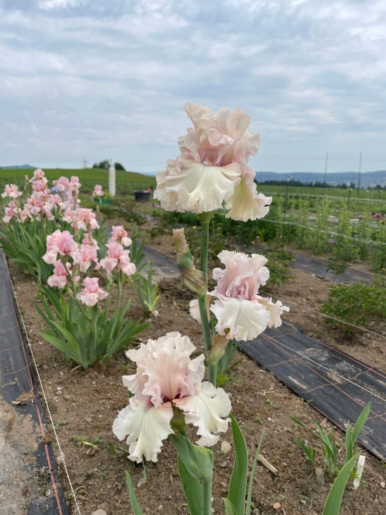„Auf meinem Feld wachsen auch wunderschöne und seltene Sorten von Iris. Besonders liebe ich die hellrosa und lachsfarbenen Töne, die auch so selten zu finden sind. Die unwiderstehliche Schönheit dieser Blumen lässt mich regelmäßig neue Sorten kaufen, um meine Sammlung zu erweitern.“